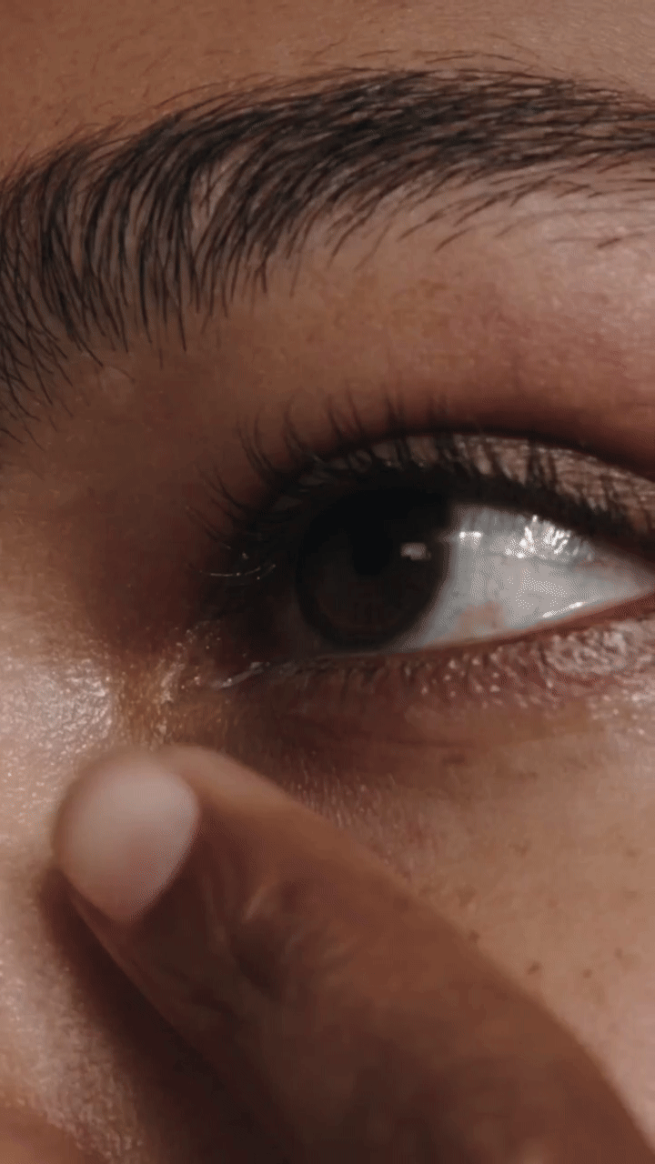 Con la yema del dedo, colocá una pequeña cantidad alrededor de los ojos. Difuminá con golpecitos suaves, sin frotar.